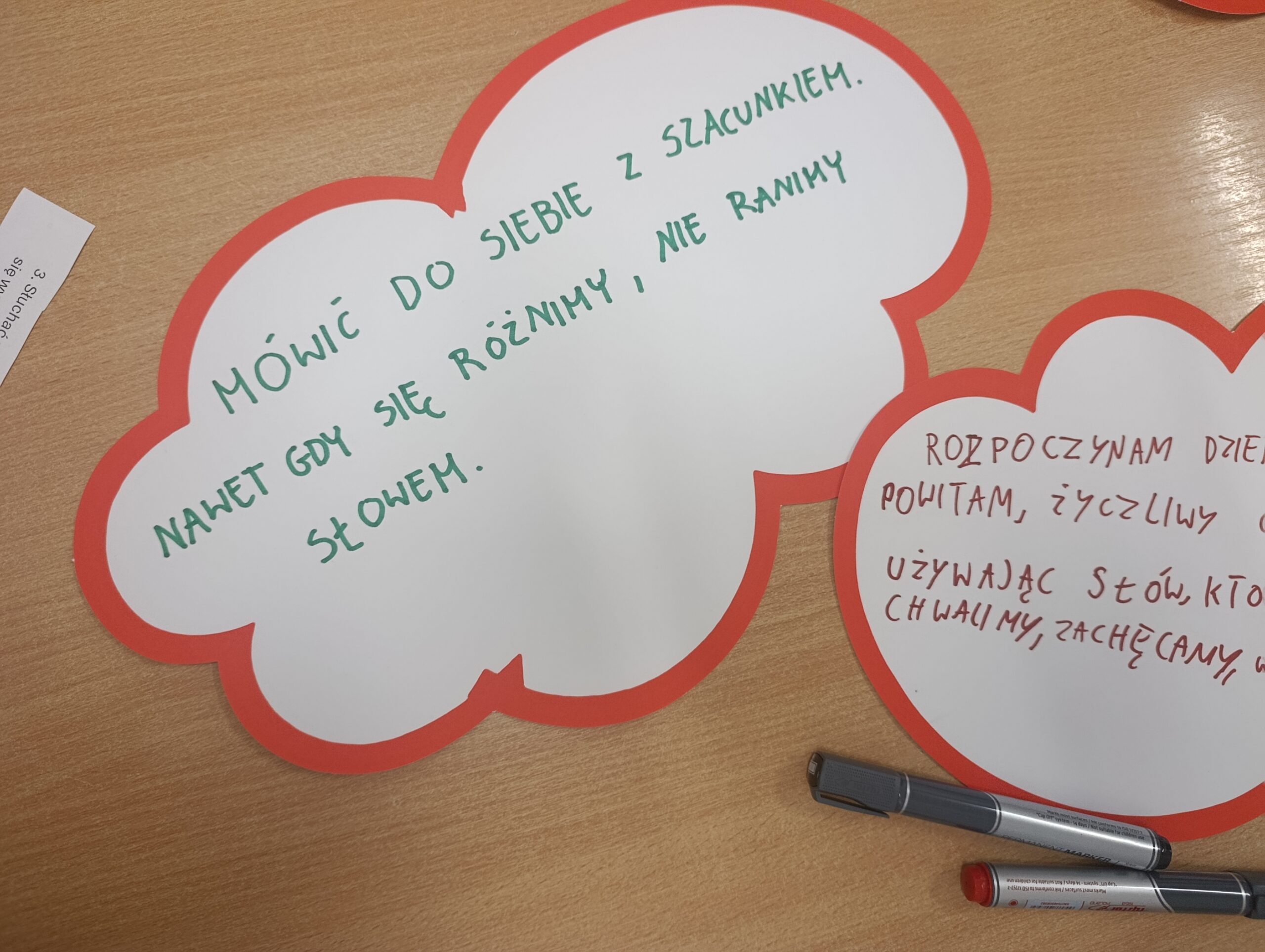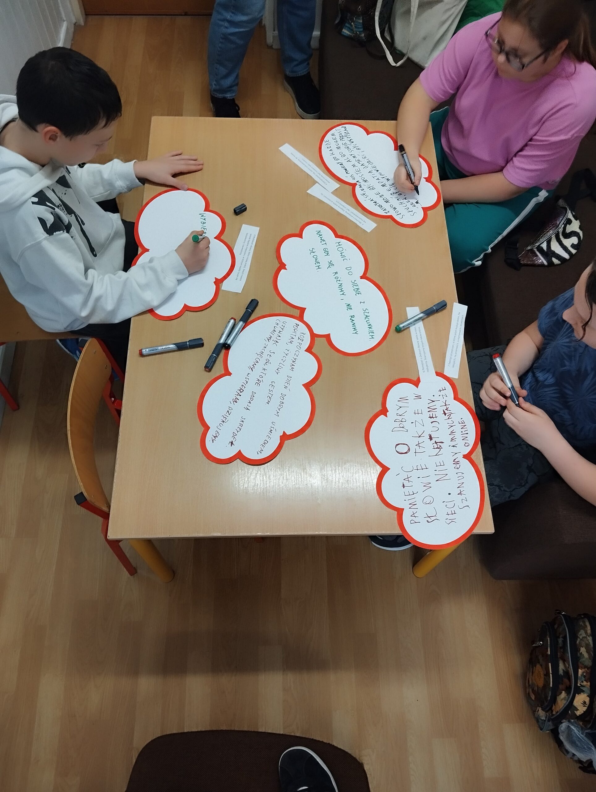 Podczas wspólnych warsztatów i zajęć wykorzystaliśmy innowacyjne metody pracy – m.in. burzę słów, mapy empatii i gry komunikacyjne, które pomogły nam lepiej zrozumieć, jak wielką moc mają słowa, którymi się posługujemy.