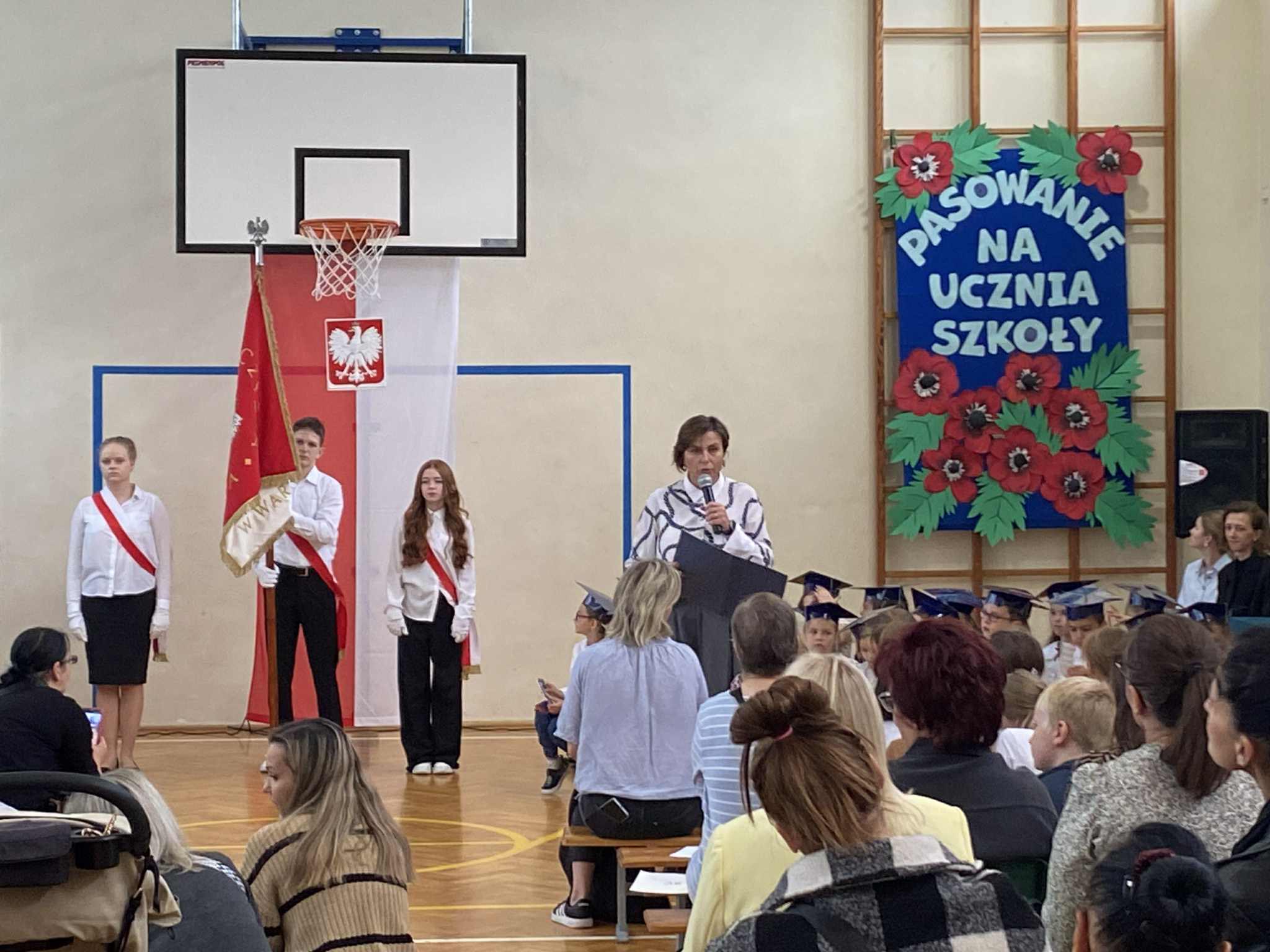 Rano radośnie przyjęliśmy pierwszoklasistów w szeregi uczniów.