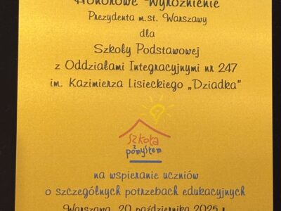 Wyróżnienie przyznano za działania na rzecz wspierania uczniów o szczególnych potrzebach edukacyjnych. To dla nas ważne potwierdzenie, że podejmowane inicjatywy i codzienna praca całej społeczności szkolnej mają realną wartość i sens.